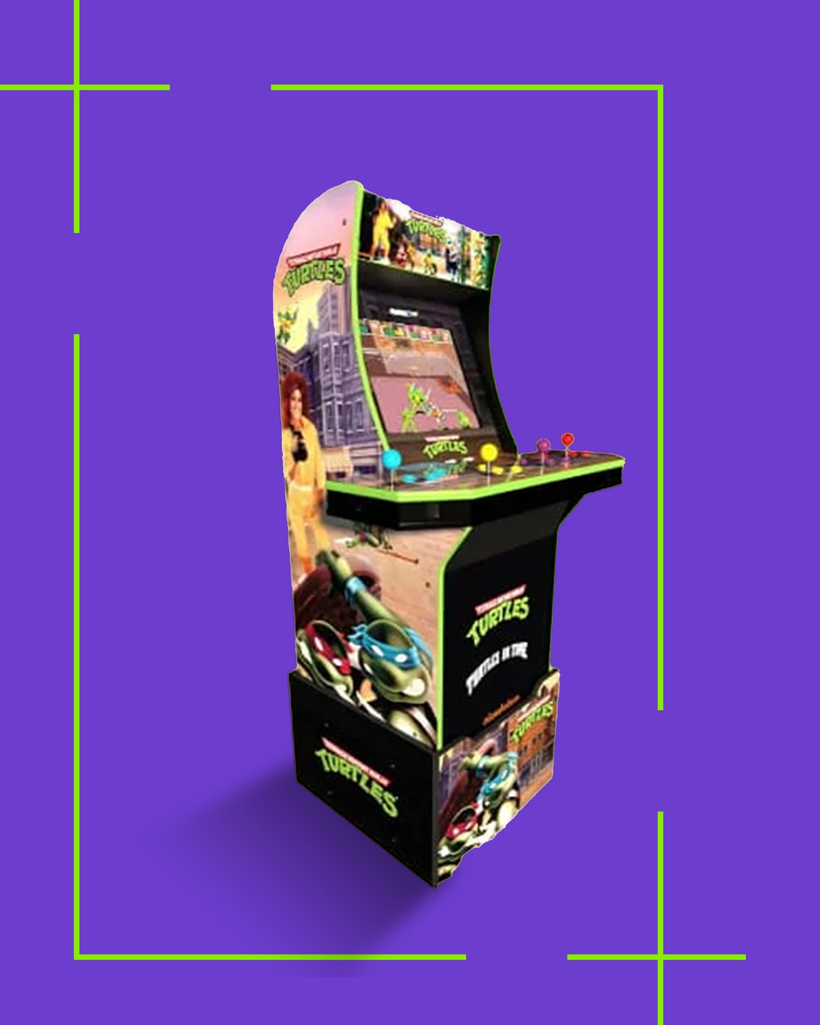 ٦: أركيد سلاحف النينجا: مع منصة - ٤ لاعبين / لعبتين. الأبعاد: الارتفاع: ١٫٤٨ سم / العرض: ٦٤ سم / الطول: ٨٠ سم