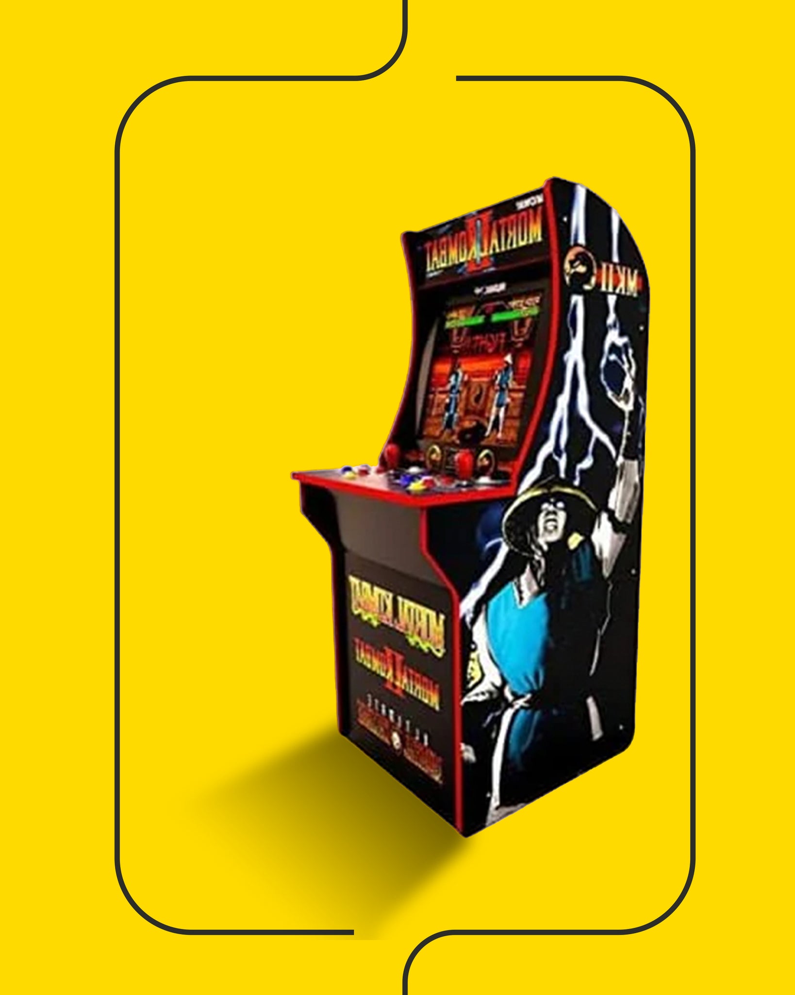 ١: خزانة ألعاب مورتال كومبات الصغيرة: خزانة ألعاب أركيد ٣ في ١. الأبعاد: الارتفاع: ١٫٤٨ سم/العرض: ٥٨ سم/الطول: ٤٨ سم