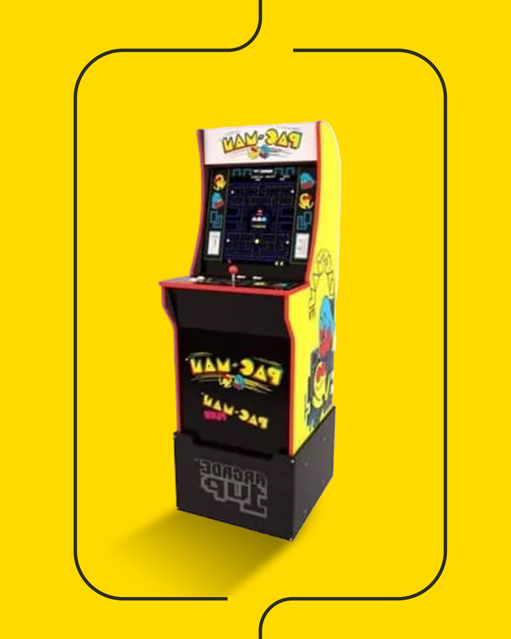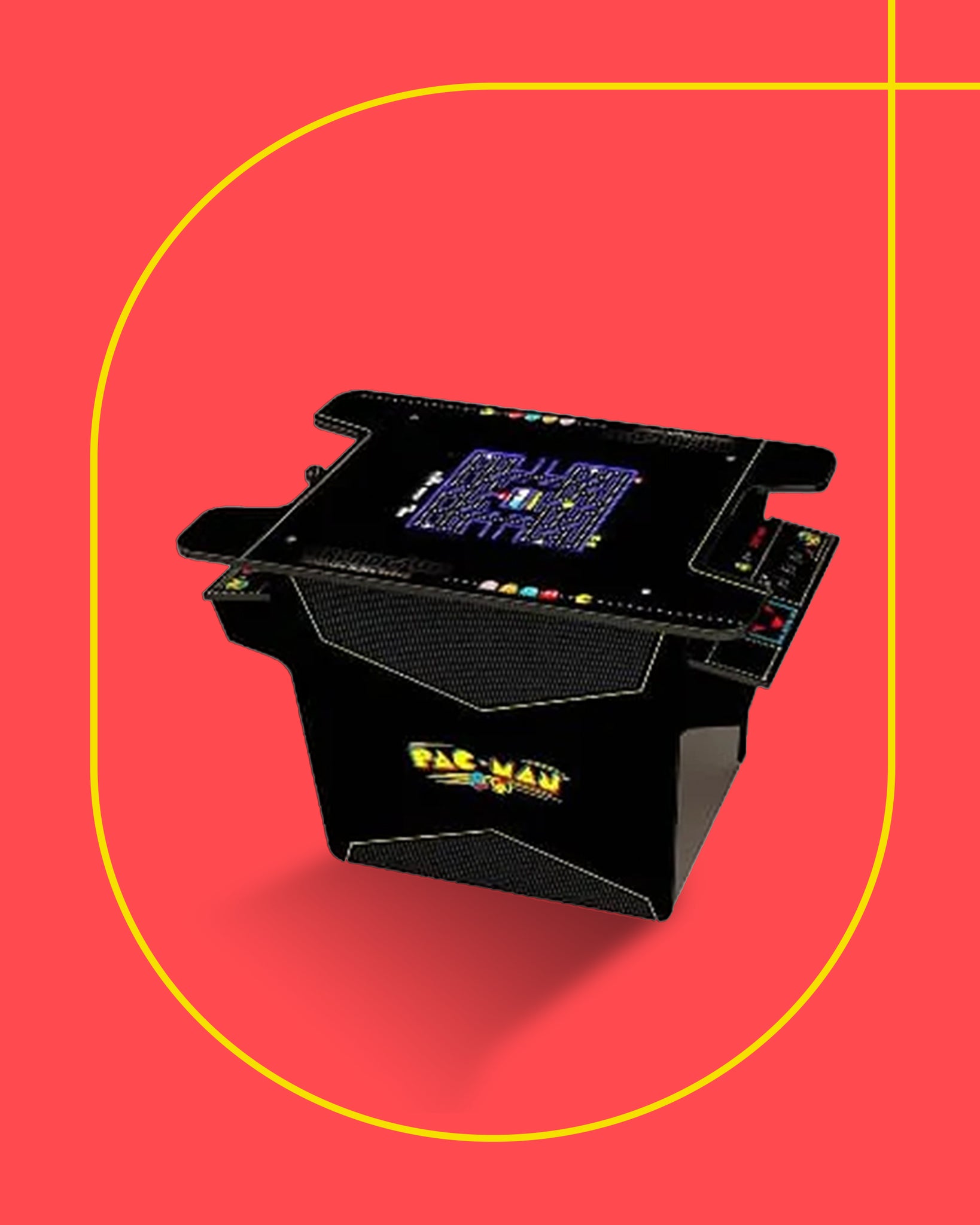 ٤: لعبة أركيد باك مان كابينتي الصغيرة: أركيد كابينتي ٢. الأبعاد: الارتفاع: ١٫٤٨ سم/العرض: ٥٨ سم/الطول: ٤٨ سم